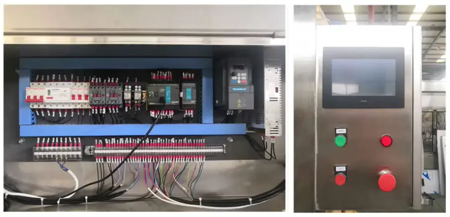 The integrated PLC microcomputer and touchscreen control panel simplify operation and parameter adjustments. Key functions include: