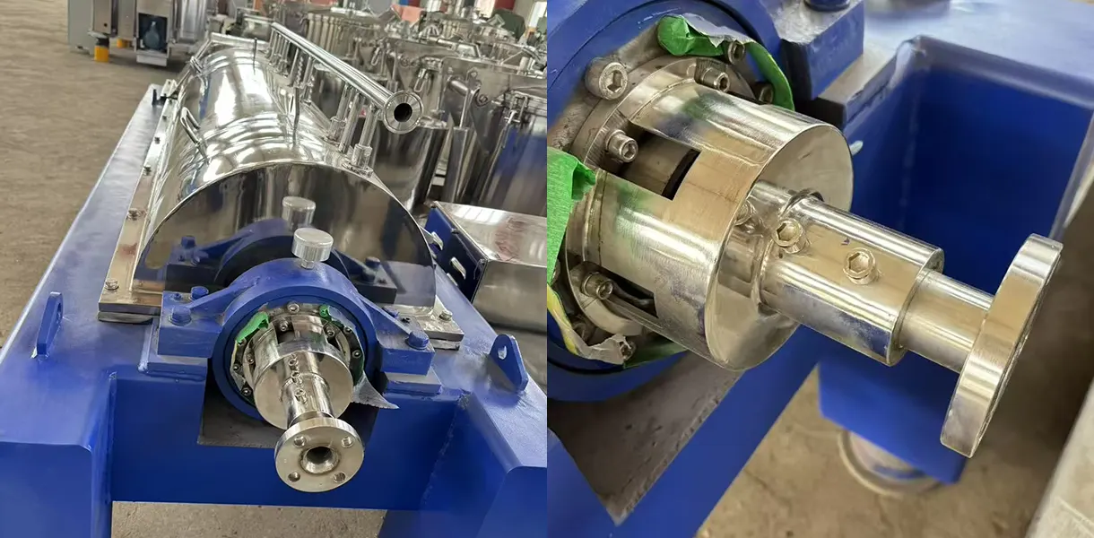 The decanter centrifuge operates using a high-speed rotating bowl and internal screw conveyor that rotate in the same direction but at slightly different speeds.
